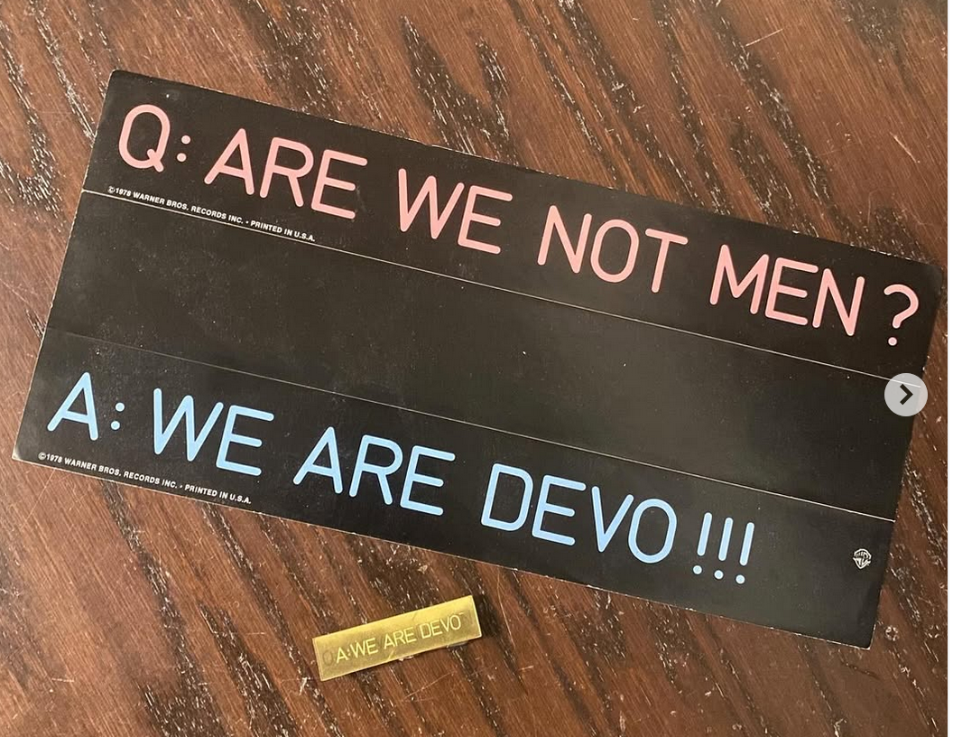 DEVO Q: Are We Not Men A: We Are Devo Promo stickers. Circa 1978 PLUS lenticular pin!